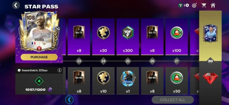El Pase de Estrella es un pase de temporada premium que desbloquea recompensas exclusivas al completar misiones. Es valioso porque otorga jugadores de élite, monedas, mejoras y otros recursos difíciles de obtener de forma gratuita. Actúa como la principal vía de progreso dentro de una temporada, ofreciendo un camino estructurado para fortalecer tu plantilla sin depender únicamente del mercado de transferencias o la suerte en sobres.